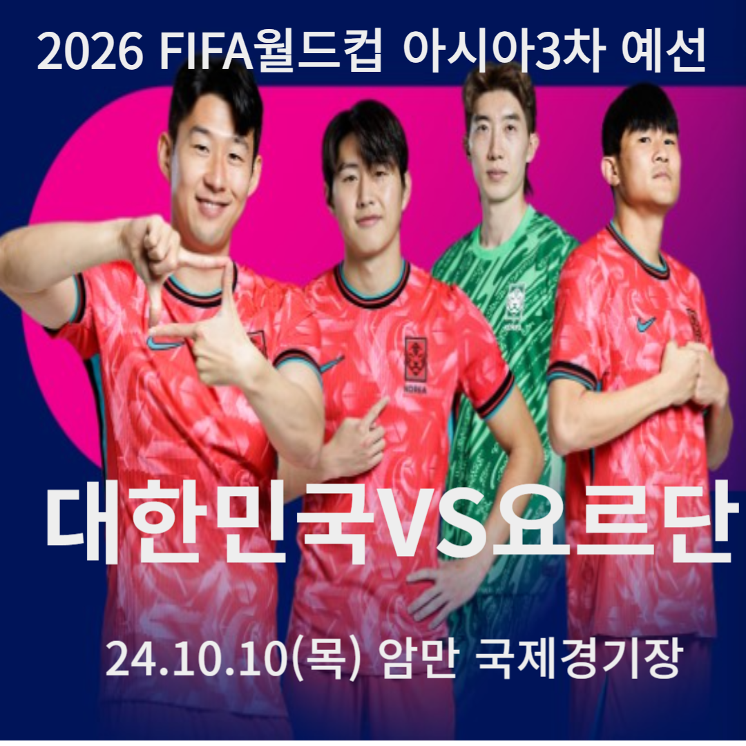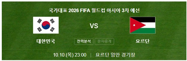 ;2026년 북중미 월드컵 대한민국과 요르단과의 월드컵 3차 예선전이 10월10(목)에 있습니다. 요르단과의 경기는 원정경기로 암만 국제경기장에서 뛰게됩니다.