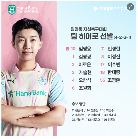임영웅은 경기 후 쿠팡플레이 인터뷰에서 "레전드 선수분들과 운동장에서 호흡할 수 있었던 것만으로도 영광이고 뛰는 내내 즐거웠다. 이 순간이 행복했다"라고 소감을 전했다.