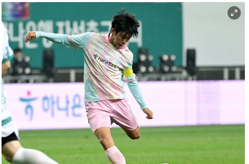 전반이 끝나고 선수들이 잔디 위를 떠나자 무대 의상으로 갈아입은 임영웅이 그라운드 위에 다시 등장했다. 지난 5월 서울 올림픽 경기장을 하늘빛으로 수놓았던 임영웅은 이번엔 대전 월드컵경기장에서 직접 작사, 작곡에 참여한 곡 'HOME'등을 비롯한 노래로 경기 자을 찾은 팬들을 매료시켰다.