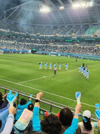 이날 경기장을 찾은 대부분의 관중은 임영웅 팬으로 보였다. 거의 모든 관중이 임영웅 팬임을 인증하는 하늘색 티셔츠와 하늘색 응원봉을 들었고 전광판에 임영웅 모습이 잡히거나 임영웅이 공을 잡으면 경기장은 떠나갈 듯 함성으로 가득 찼다.